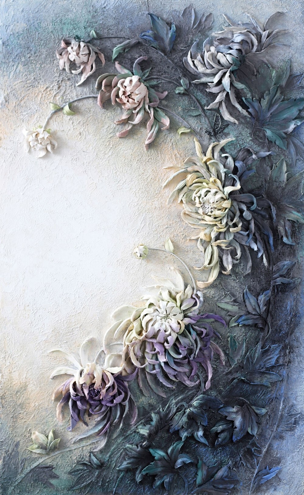 Sculptural painting is an artistic technique for creating three-dimensional images from a special sculptural paste. With this technique, you can easily create magnificent flowers and any other images up to 8 centimeters high! You can use sculptural painting to create paintings and sculptures, elegant interior items such as wall clocks, to decorate accessories such as handbags or jewelry. Confectioners can use sculptural painting to decorate cakes if they use icing or a special cream, the recipe of which we give in the course.